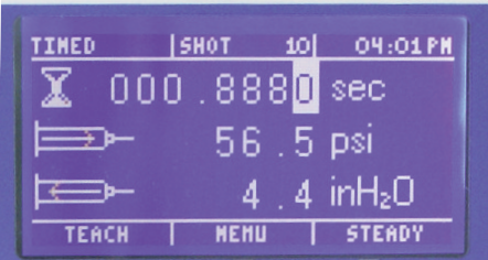 ? 時間的增加幅度可以低至 0.0001 秒,提供精確的點膠控制。