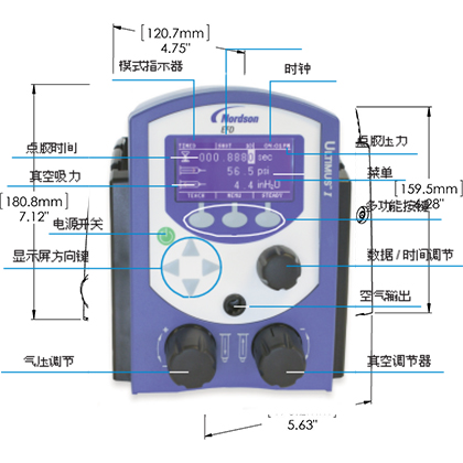 ? 所有的數(shù)字多功能顯示器能同時讀出氣壓、時間、真空、點膠注射計數(shù)和時間。