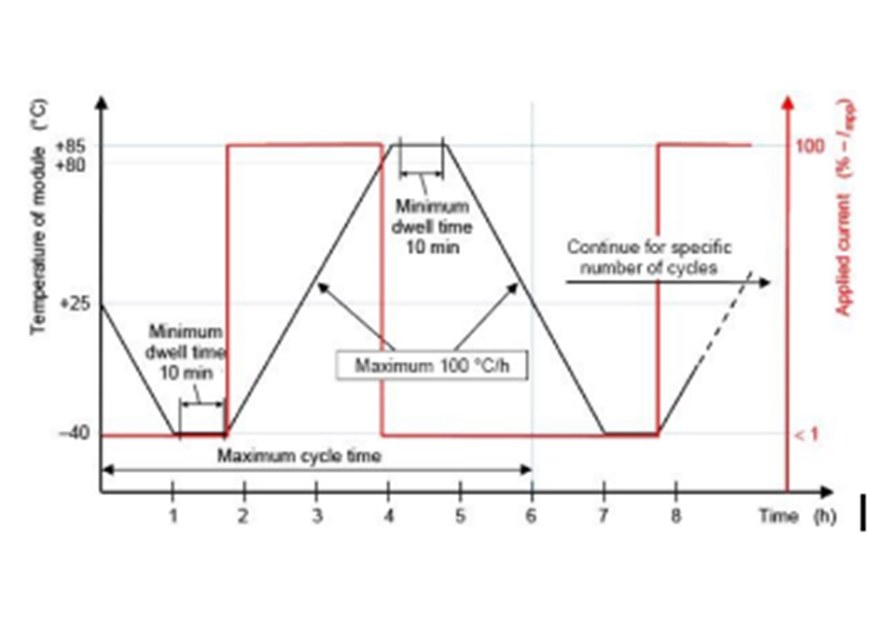 降溫段、-40°C 保持段及 80°C 以上,減至不超過 1.0 % STC 峰值功率的連續(xù)電流來測量連續(xù)性。